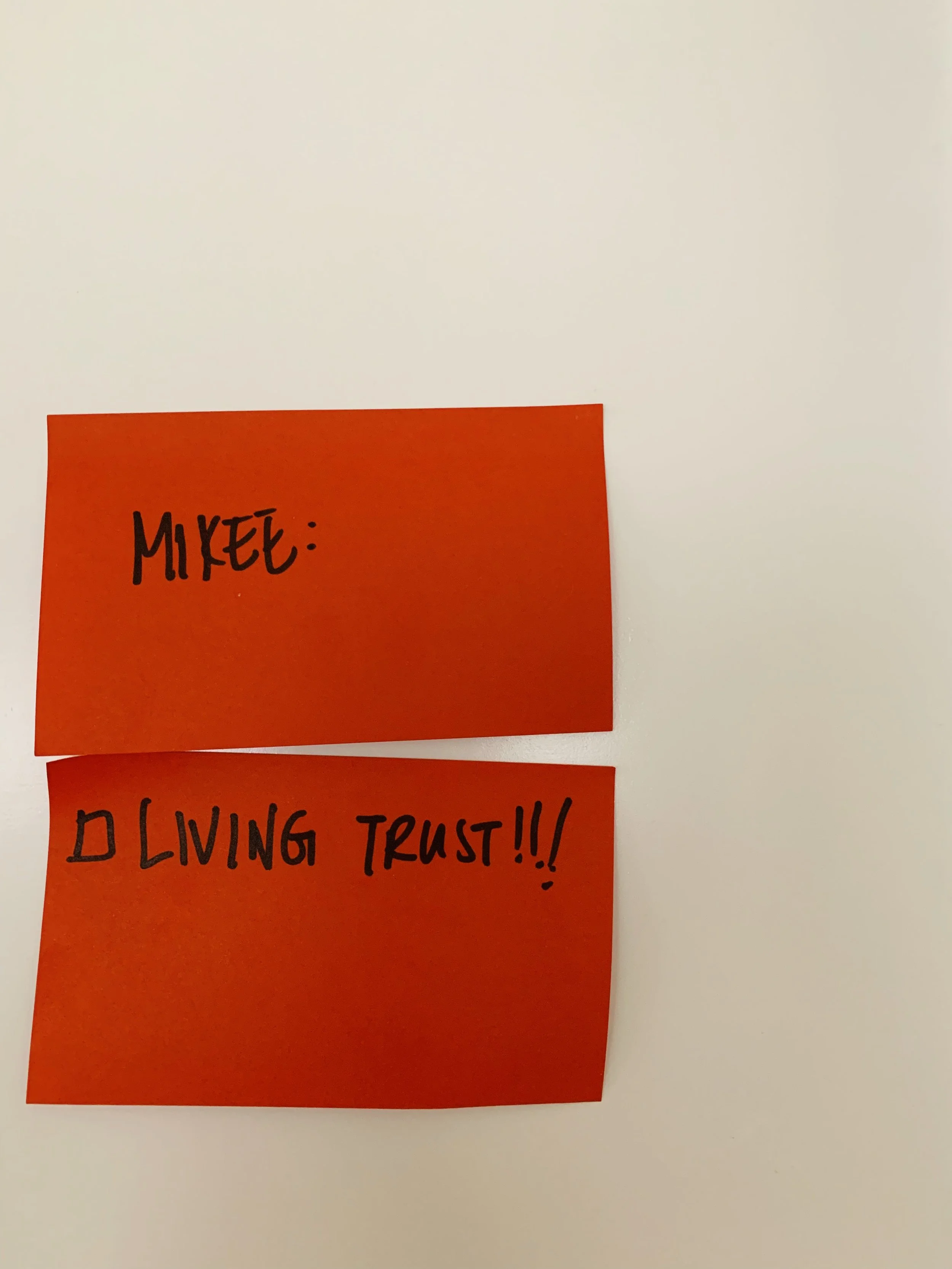 Our living trust has been on our to-do list for 6 whole years. While the post-its have dried up and dropped off, it continues to plague my mind and heart. It’s not an easy topic to discuss - Who should be our kids’ parents if we die? Why? And are they onboard? You and your partner might actually have different perspectives on this. At the very least, start talking about it now.